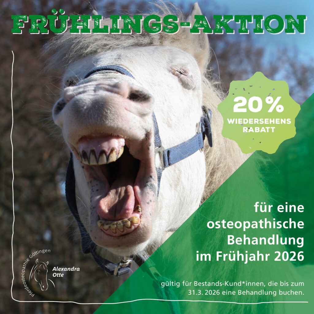 Deshalb ist jetzt der perfekte Zeitpunkt für eine osteopathische Behandlung. Kleinere Verspannungen und Blockierungen, die sich evtl. über den Winter entwickelt haben, werden gelöst und euer Pferd optimal auf Training, Weidezeit und die kommende Saison vorbereitet.